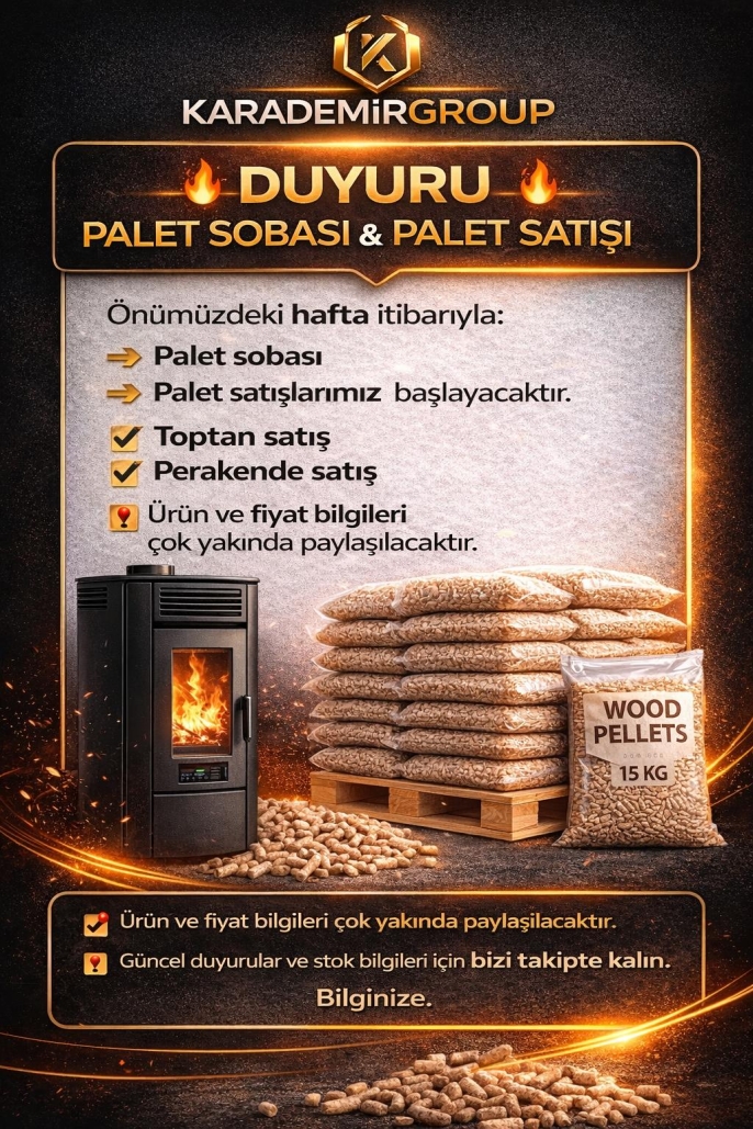 Karademir Group çatısı altında hayata geçirilecek projeyle birlikte, önümüzdeki hafta itibarıyla palet sobası ve palet satışları başlayacak. Hem toptan hem de perakende satış imkânı sunulacak olan sistemle, vatandaşların daha ekonomik, daha temiz ve daha pratik bir ısınma çözümüne ulaşması amaçlanıyor.