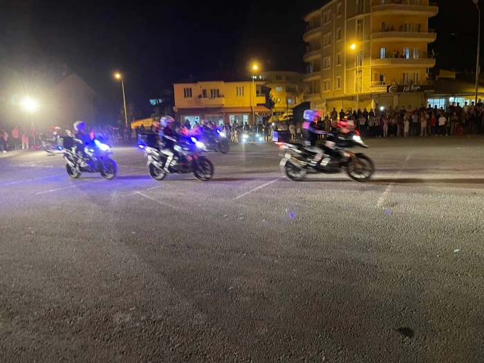 ALPARSLAN DİYARI- Yunus timleri, birbirinden zorlu ve cesaret isteyen hareketleri büyük bir ustalıkla yaparak izleyenlerin nefesini kesti. Rampalardan atlayışlar, dar alan manevraları ve hızlı dönüşlerle dolu gösteri, Malazgirt halkı için unutulmaz bir anı oldu.