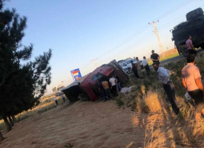 Tır'da yüklü olan tonlarca buğday yol kenarına döküldü. Buğdayın toplanması için çalışma başlatıldı.