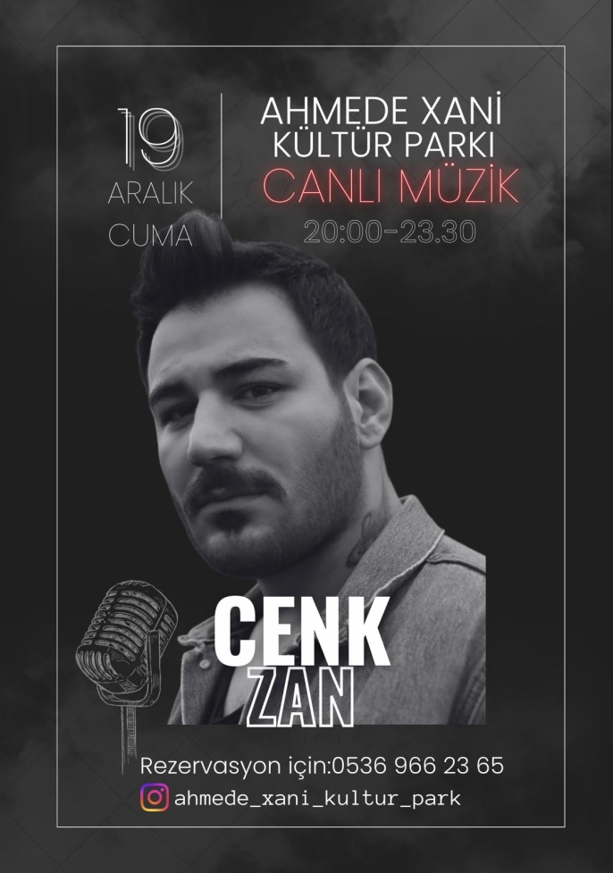 Canlı müzik gecesine katılmak isteyenler, 0536 966 23 65 numaralı telefondan rezervasyon yaptırabilecek. Etkinlikle ilgili güncel bilgilere ise @ahmede_xani_kultur_park Instagram hesabı üzerinden ulaşılabiliyor.