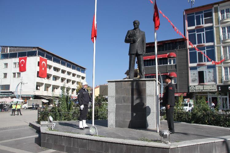 Tören, Malazgirt Kaymakamı Göksu Bayram ve Belediye Başkanı Cengiz Altın’ın Atatürk heykeline çelenk sunumuyla başladı. Saygı duruşu ve İstiklal Marş’ının okunmasıyla son bulan törene, Kaymakam Göksu Bayram, Belediye Başkanı Cengiz Altın, Jandarma Komutanı Binbaşı Kamil İncebacak, İlçe Emniyet Müdürü Serhan Türk, siyasi parti ve STK temsilcileri ile kurum amirleri katıldı.