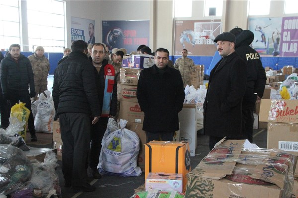 İlçedeki spor salonunda toplanan yardım malzemeleri, Sosyal Yardımlaşma ve Dayanışma Vakfı personelleri, Malazgirt Belediyesi çalışanları, jandarma, Emniyet güçleri, öğretmenler ve çok sayıda gönüllü vatandaş tarafından tek tek paketlenerek araçlara yüklenmeye devam ediyor.