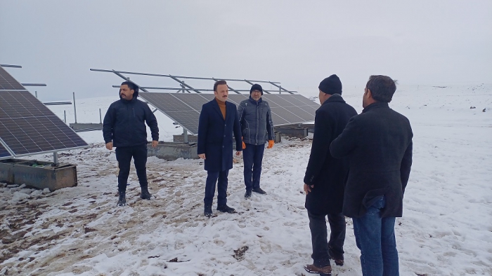 Malazgirt Kaymakamı Göksu Bayram, Kurtulmuşoğlu köyü yakınlarında kurulan güneş panellerini yerinde incelemek üzere köye bir ziyaret gerçekleştirdi.