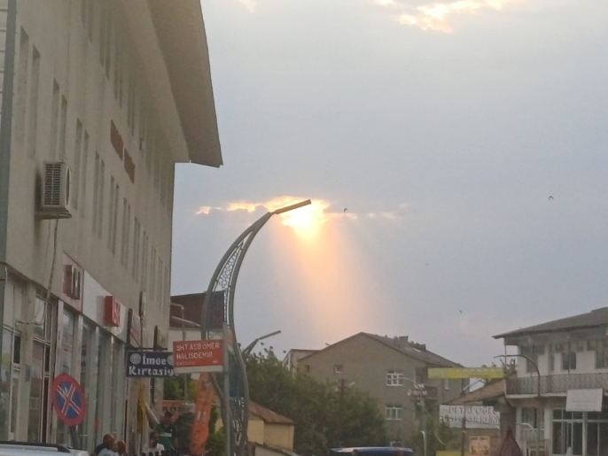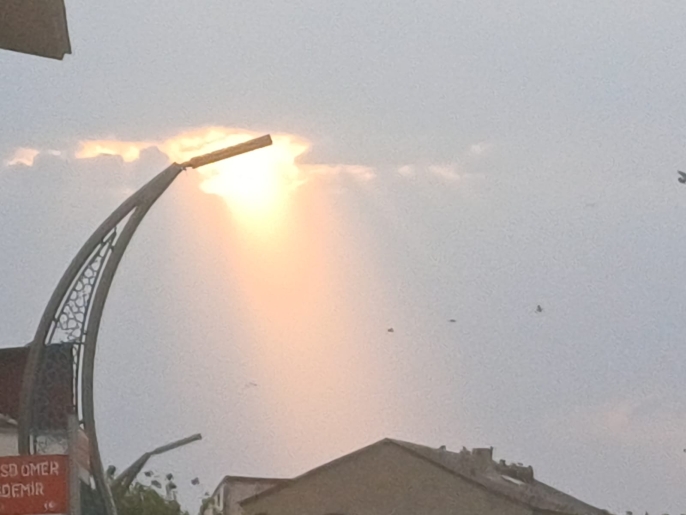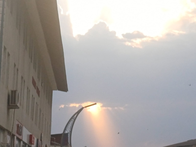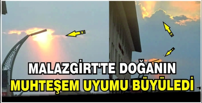 ALPARSLAN DİYARI- İlçe merkezinde belediye binası yakınlarında çekilen fotoğrafta, bulutların arasından süzülen güneş ışınlarının bir sokak lambasıyla adeta bütünleştiği an objektife yansıdı.