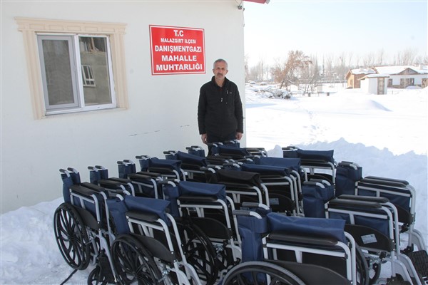 Malazgirt Danışmendgazi Mahallesi Muhtarı Hasan Başaran, engelli ve yatalak hastalara tekerlekli sandalye dağıttı.
