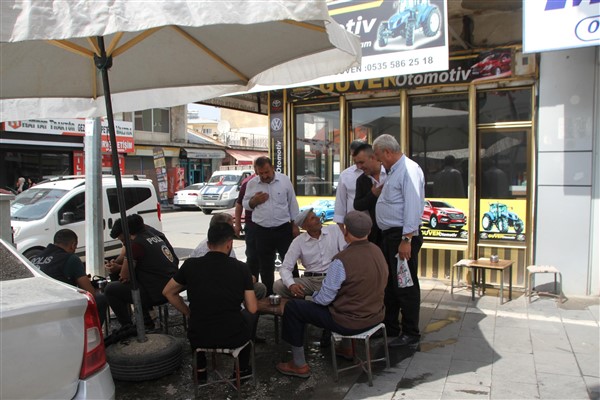 Malazgirt’teki Sivil Toplum Kuruluşları (SKT) temsilcileri Malazgirt esnafını ziyaret ederek Cumhurbaşkanı Recep Tayyip Erdoğan’ın katılacağı mitinge davet ettiler.