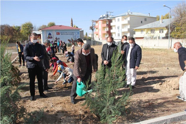 Cumhurbaşkanlığı himayelerinde hayata geçirilen ve tüm Türkiye’de startı verilen Milli Ağaçlandırma Günü kapsamında ‘Geleceğe Nefes, Dünyaya Nefes’ kampanyasına katılım sağlayan Malazgirt Kaymakamı Emre Yalçın, Belediye Başkan Vekili Fesih Akkuş, İlçe Milli Eğitim Müdürü Vedat Kaya, kurum amirleri ve öğrenciler ile birlikte fidan dikimi yapıldı