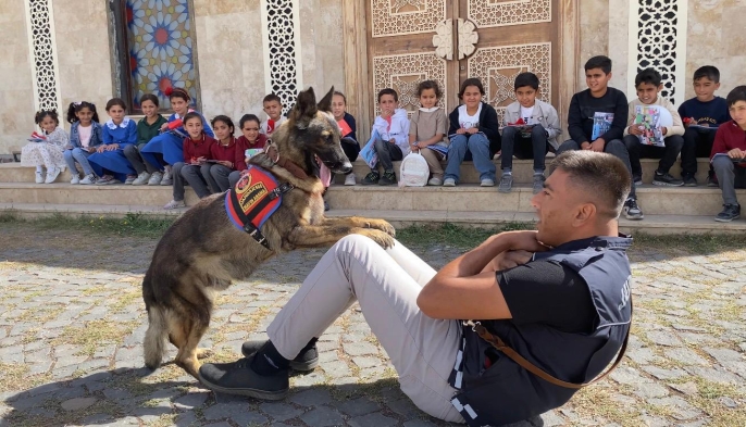 Etkinliğin en renkli anlarından biri ise dedektör köpeklerin gösterisi oldu. Köpeklerin sergilediği performans, çocukların büyük beğenisini topladı.