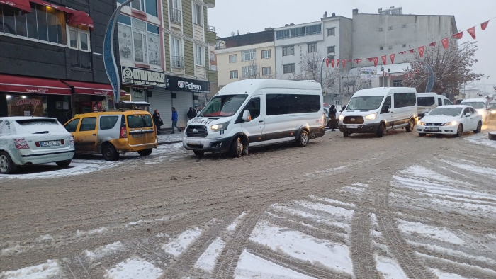 Kar yağışı sonrası özellikle Malazgirt ilçe merkezinde servis araçlarının yoğunluğu gözlendi.