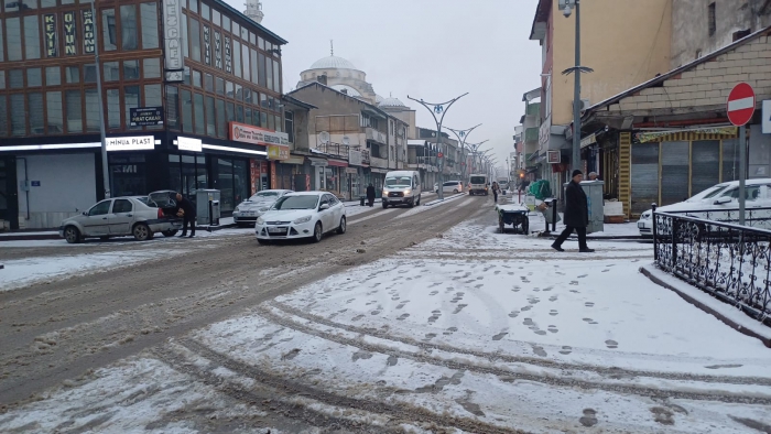 ALPARSLAN DİYARI-Bugün sabaha doğru başlayan kar yağışından dolayı sıcaklık hissedilir derecede düşerken, ilçe kar yağışı ile beyaza büründü.