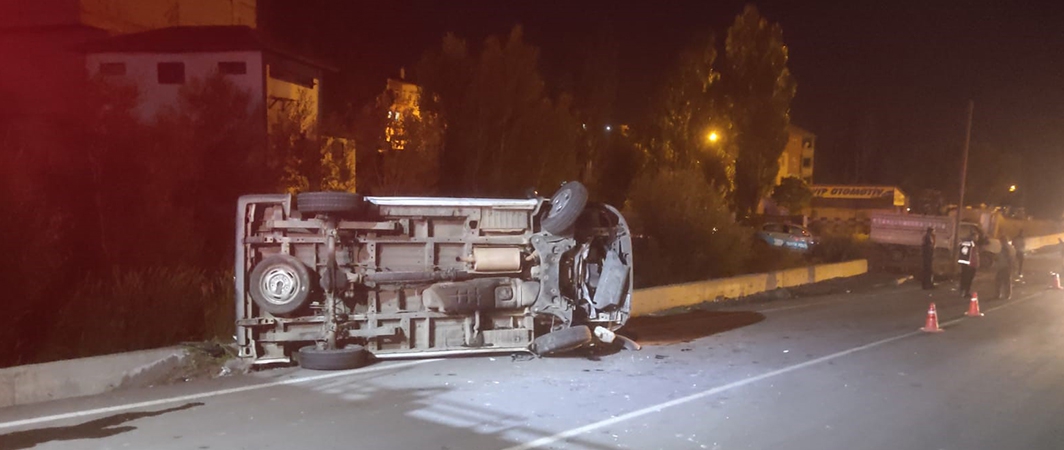 İki aracın carpıştığı kazada takla atan araç 50 metre sürüklenip ters döndü.