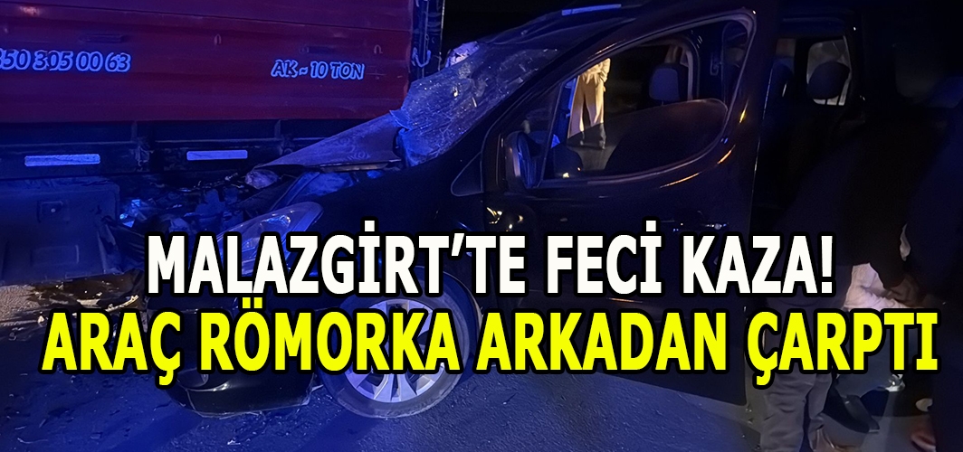 ALPARSLAN DİYARI- Kaza, saat 18.00 sıralarında Malazgirt–Ahlat yolu üzerindeki Malazgirt ilçe girişi, Süphan Anadolu Lisesi civarında yaşandı. Edinilen bilgilere göre, seyir halindeki bir otomobil, önünde ilerleyen ve şeker pancarı yüklü olan traktörün römorkuna arkadan çarptı.