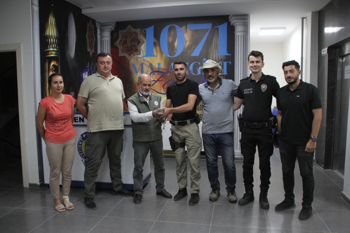 Malazgirt ilçe emniyet müdürlüğü bahçesinde gezintiye çıkan Balaban kuşu ilçe Emniyet Müdürü Serhan Türk ve ekibi tarafından yakalanarak koruma altına alındı.