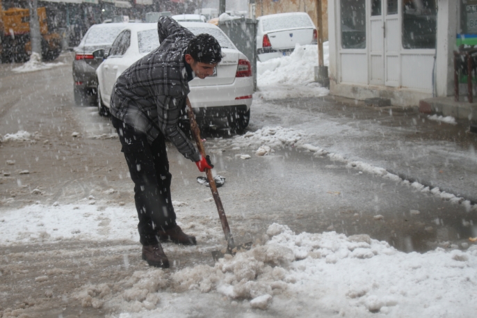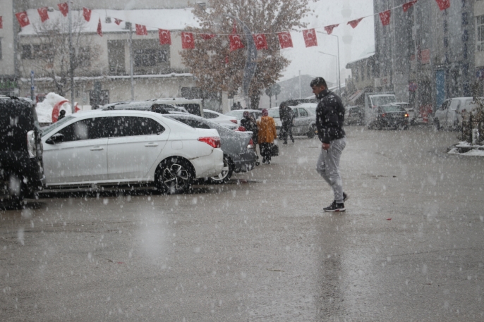 ALPARSLAN DİYARI- Kısa sürede etkili olan yağışla birlikte ilçe merkezi ve çevre köyler beyaza bürünürken, ulaşımda yer yer aksamalar yaşandı.