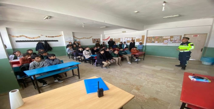 Muş İl Jandarma Komutanlığı koordinesinde, Malazgirt İlçe Trafik Jandarması ekipleri tarafından İyikomşu Köyü İlkokulu ve Ortaokulu’nda gerçekleştirilen seminerde, toplam 126 öğrenci ve öğretmene trafik kuralları anlatıldı.