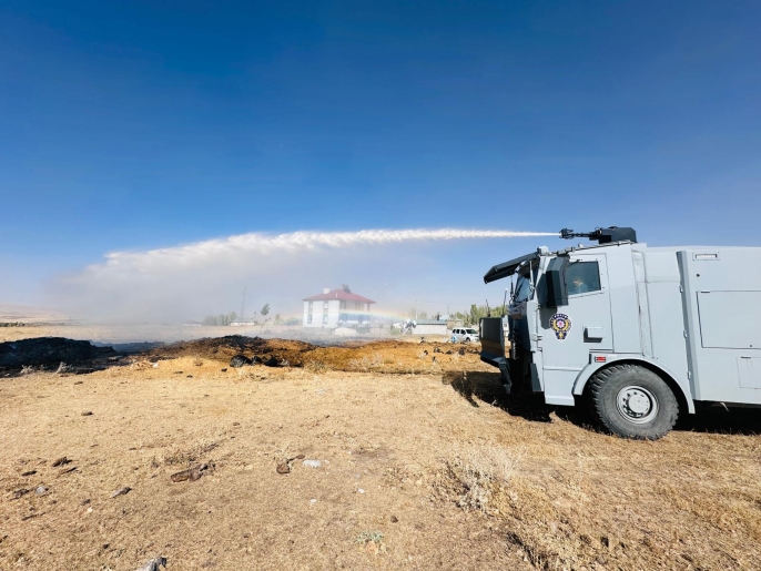 İlçe Emniyet Müdürü Faruk Kıran’ın talimatıyla olay yerine kısa sürede iki TOMA (Toplumsal Olaylara Müdahale Aracı) sevk edildi. Polis ekipleri, yoğun duman ve alevlere rağmen hızlı bir şekilde yangına müdahale ederek alevlerin evlere sıçramasını son anda önledi.