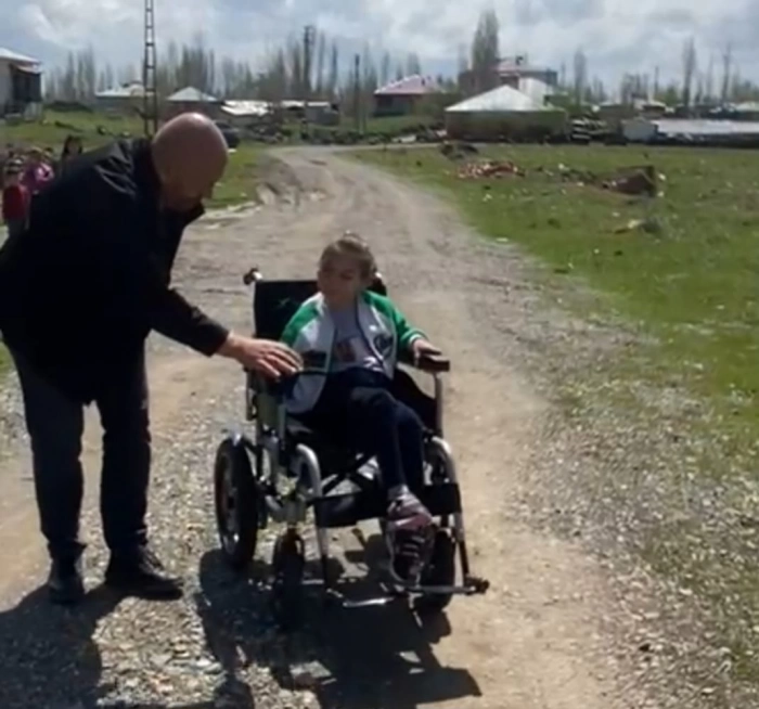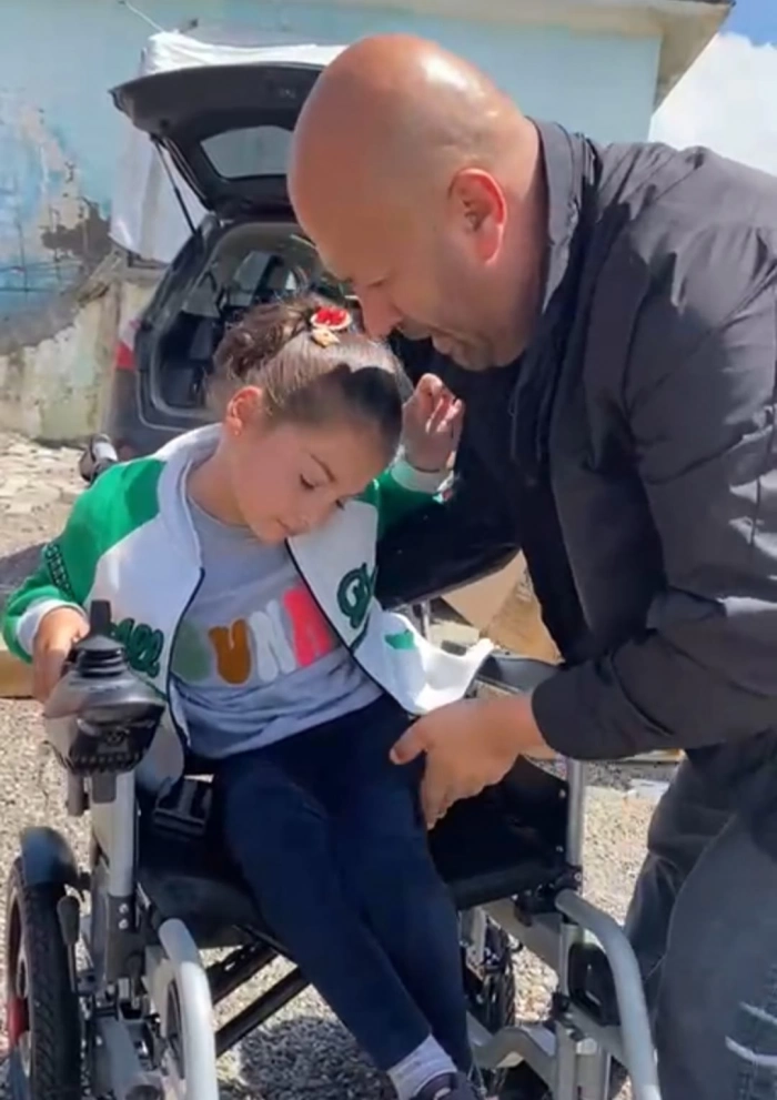 ALPARSLAN DİYARI- 8 kişilik Öztürk ailesinin dördüncü çocuğu olan ve küçük yaşta geçirdiği beyin felci nedeniyle yürüme güçlüğü çeken Büşra Öztürk'ün akülü araç isteği, Öner Ergün tarafından karşılandı.