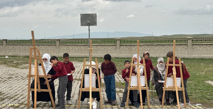 ALPARSLAN DİYARI- Köy okulunda düzenlenen resim etkinliği, hem duygusal hem de renkli anlara sahne oldu.