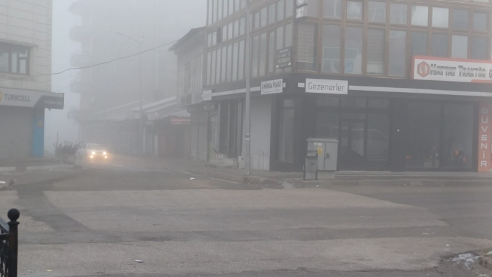 ALPARSLAN DİYARI- Hava sıcaklığının sıfırın altında 1 derece ölçüldüğü ilçe merkezinde soğuk hava ve sis, sabah saatlerinde etkisini arttırdı.