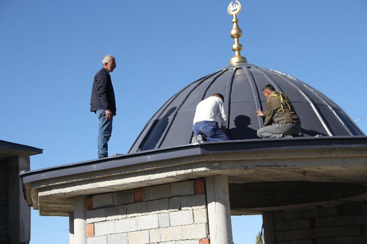 Cami inşaatının kubbelerini yapmak için Maraş ili Elbistan ilçesinden gelen çatı ustaları Yasin, Ali Mesut Er kardeşler ile Kadir Yüksel ise bizler yıllardır bu işten evimize ekmek götürüyoruz. Bu seferde Malazgirt ilçemizde hayırseverlerin yaptırdığı cami kubbeleri yapmak için geldik. Çok şükür bu camimizin de kubbelerini alüminyum kaplamasını yaptık. Caminin yapılması için yardımları esirgemeyen tüm hayırseverler teşekkür ediyoruz.”dediler.