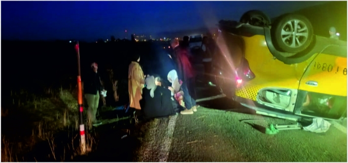 ALPARSLAN DİYARI- Edinilen bilgilere göre, öğretmenleri taşıyan ticari taksi kontrolden çıkarak yolda takla attı.