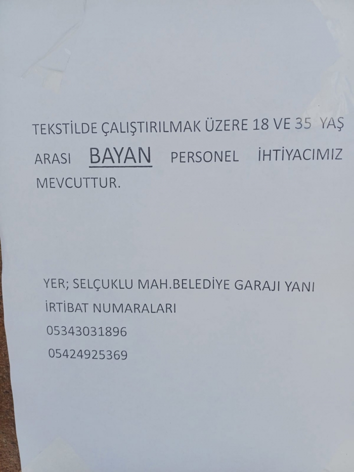 ALPARSLAN DİYARI-Tekstil Kent, genişleyen iş hacmi nedeniyle yeni elemanlara ihtiyaç duyuyor. İş başvurusu yapmak isteyen adayların 18 ile 35 yaş arasında olması gerekiyor. Başvurular, Tekstil Kent'in Selçuklu Mahallesi'ndeki merkezine yapılacak.