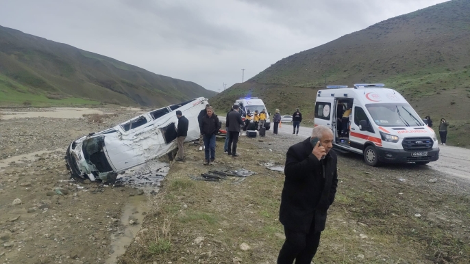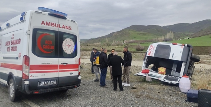 Muş-Bulanık kara yolu Korkut Karakale mevkiinde seyir halinde olan yolcu minibüsü, sürücüsünün direksiyon hâkimiyetini kaybetmesi sonucu kontrolden çıkarak dere yatağına devrildi.