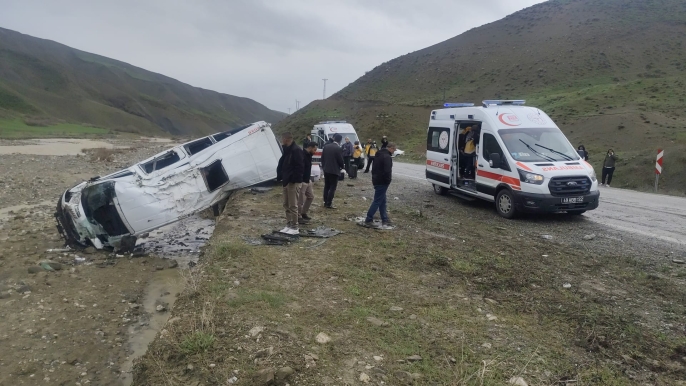 49 ABM 490 plakalı minibüsün devrildiğini gören vatandaşların ihbarı üzerine olay yerine sağlık, itfaiye, AFAD ve jandarma ekipleri sevk edildi. Kazada araç içerisinde bulunan yolcular, ekiplerin ve çevredeki vatandaşların yoğun çabasıyla minibüsten çıkarıldı.