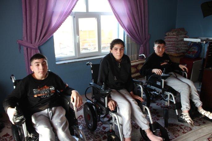 ALPARSLAN DİYARI- Ağrı’nın Patnos ilçesine bağlı Özdemir köyünde yaşayan Mehmet Emin Kaşar, üç çocuğunun engelli olduğunu belirterek Muhtar Başaran’a ulaştı. İkiz kardeşler Hasan ve Hüseyin(14) ile ablaları Söngül’ün (15) durumuna kayıtsız kalmayan Başaran, aileyi ziyaret ederek taleplerini kamuoyuna duyurdu.