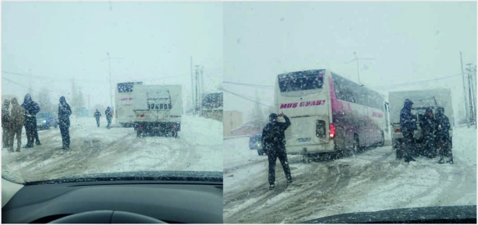 ALPARSLAN DİYARI- Yoğun kar yağışı sebebiyle ulaşımda aksamalar yaşanırken, yaklaşık 50 aracın yolda kaldığı öğrenildi.