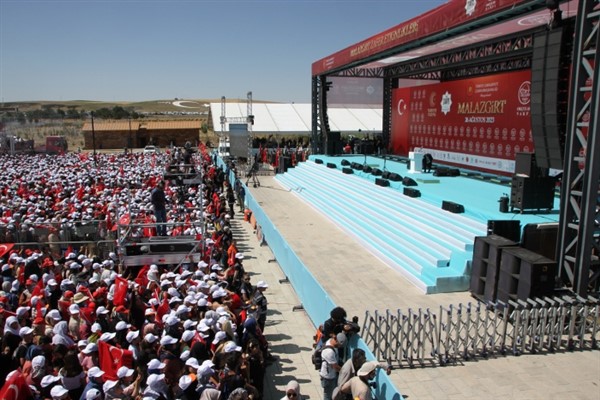 ALPARSLAN DİYARI- Malazgirt Zaferi'nin 952. yıl dönümü kutlama programı Malazgirt Milli Park Alanı'nda düzenlendi. Gerçekleştirilen törene Türkiye’nin dört bir yanından yüzbinler akın etti. Türkiye’nin ikinci binyıl hedefi için Malazgirt’ten sağlam bir mesaj verilmiş oldu. Mitinge katılanların sayısının 100 bin insanı geçtiği öğrenildi.