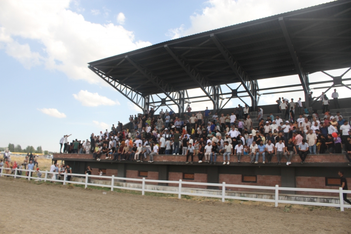 Hipodrom alanında yapılan at yarışlarını ilgiyle izleyen vatandaşlar, güvenlik güçlerinin yanı sıra yöresel giysileriyle etkinlikleri renklendirenlerle fotoğraf çektirdi.