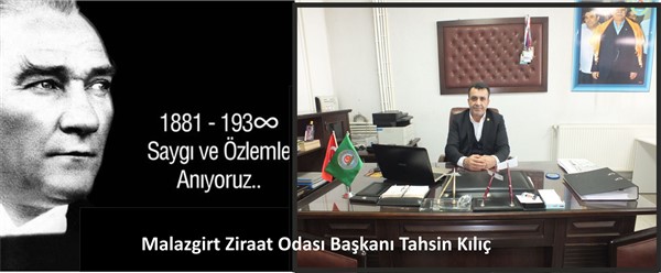 Malazgirt Ziraat Odası Başkanı Tahsin Kılıç, 10 Kasım nedeniyle bir mesaj yayımladı.