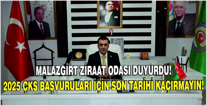 Malazgirt Ziraat Odası Başkanı Tahsin Kılıç tarafından yapılan çağrıda, çiftçilerin desteklerden mahrum kalmamaları için zamanında başvuruda bulunmaları gerektiği ifade etti.