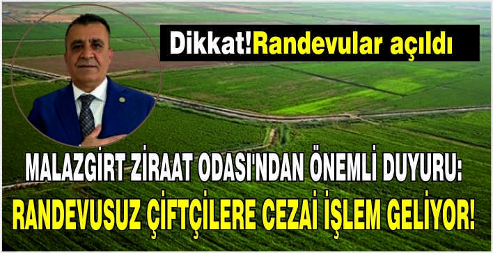 ALPARSLAN DİYARI- Başkan Tahsin Kılıç, açıklamasında biçim yapmayan çiftçilerin zamanında randevu almaları gerektiğini vurgulayarak, randevu alıp gelmeyen çiftçilere ciddi cezai işlemlerin uygulanacağını belirtti. Bu çiftçilerin bir daha randevu alamayacakları da kaydedildi.