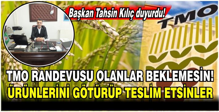 Başkan Kılıç, "TMO ilçemizde alımlarını randevusu olan üreticilerimiz için halen alımlarını sürdürüyor. Bazı kişilerin TMO cumartesinden itibaren buğday almayacak bilgisi kesinlikle yanlıştır. TMO’nun depolama yeri oldukca alımlar devam edecektir. Yetkililerden bir açıklama gelmeden söylentilere inanmayın.” ifadelerini kullandı.