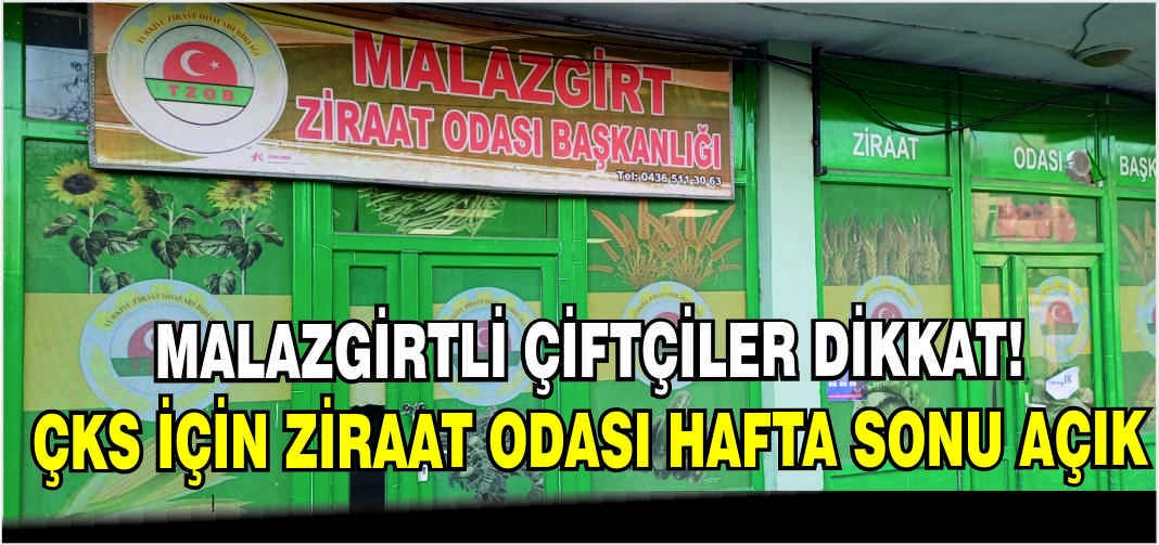 “ÇKS kayıt ve güncelleme işlemleri devam ediyor. Çiftçilerimizin hak kaybı yaşamaması için cumartesi ve pazar günleri de odamız açık olacak. Tüm Malazgirtli çiftçilerimizi işlemlerini zamanında yaptırmaya davet ediyoruz,”ifadelerini kullandı.
