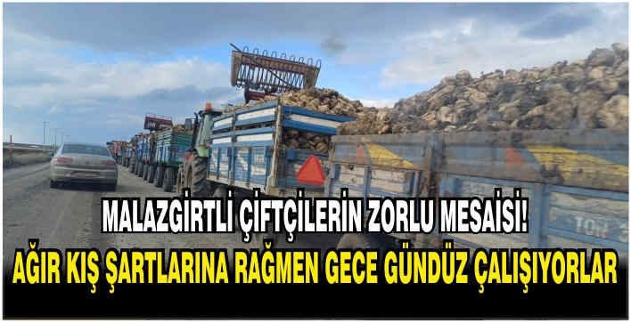 Çiftçiler, gece gündüz demeden soğuk hava şartlarına rağmen pancar hasadına devam ediyor. Traktörlerle tarlalardan topladıkları pancarları Malazgirt Şeker Alım Kantarı'na taşıyan çiftçiler, burada oluşan kuyruklar nedeniyle beklemek zorunda kalıyor. Bu bekleyiş sırasında bekleyen çiftçiler, hummalı bir çalışma içerisinde olduklarını belirtti.