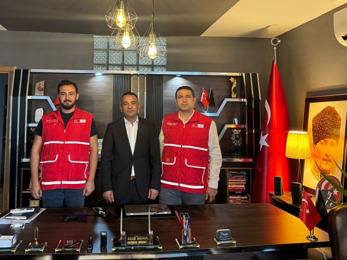 ALPARSLAN DİYARI- Kazım Yağmur, yardım faaliyetlerini daha da genişletmek amacıyla Bilecik Kızılay İl Şube Başkanı Murat Ateş’i ve Kızılay Şube Personeli Mehmet Aydın’ı ofisinde ağırladı.