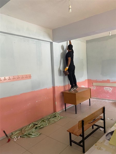 FEDAKAR ÖĞRETMENLER FIRÇALARLA OKULU BOYADI