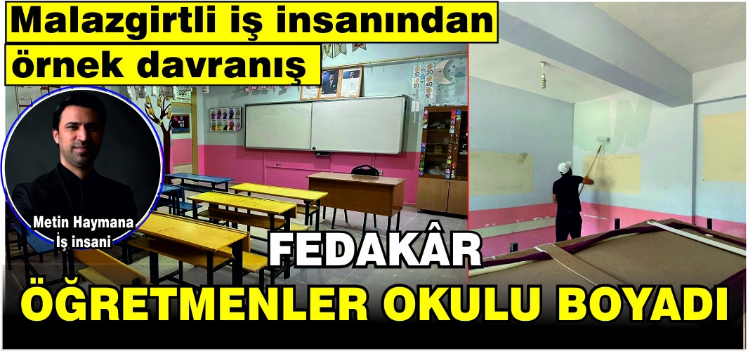 ALPARSLAN DİYARI-İstanbul’da iş hayatına devam eden Malazgirtli iş insanı Metin Haymana, kendi köyündeki okulun boya ve malzemeleri üstlendi. Haymana, kendi köyü olan Nurettin’deki okul idarecileri ile irtibata geçerek okulun tüm iç ve dış cephe boyalarını üsteleneceğini bildirdi.