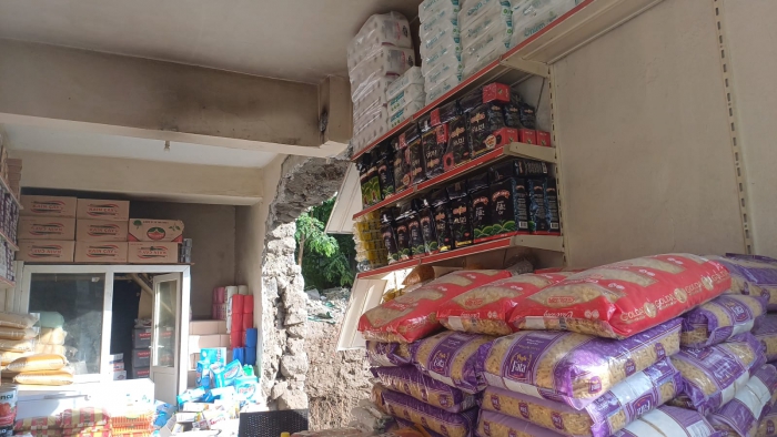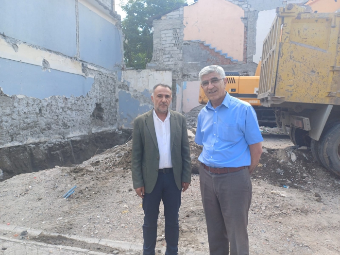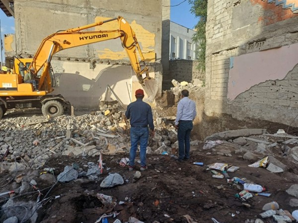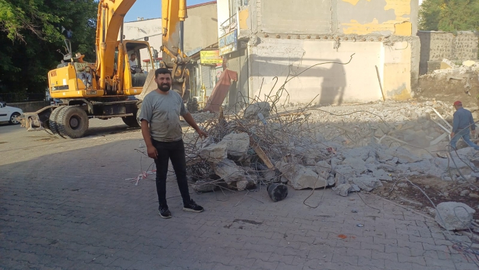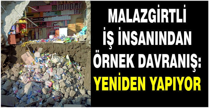 ALPARSLAN DİYARI-Ancak bu çalışmalar sırasında, inşaatın yan tarafında bulunan Nuri Alkan'a ait gıda dükkanının duvarı yıkılmış ve dükkandaki malzemeler inşaat kazı alanına dökülmüştü.