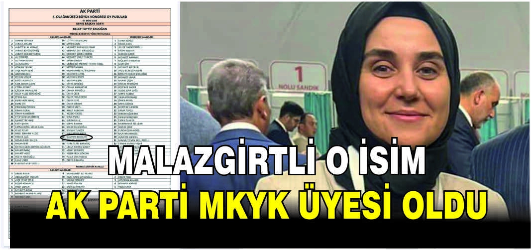 Malazgirtli eski Muş Milletvekili Muzaffer Çakar’ın kızı Sümeyye Bozkurt MKYK asil listeye seçildi.
