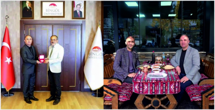 ALPARSLAN DİYARI- Ziyaretleri kapsamında Bingöl'ün gastronomi zenginliklerini keşfeden Özrek, Bingöl Üniversitesi Rektörü Profesör Doktor Erdal Çelik’i de makamında ziyaret etti.