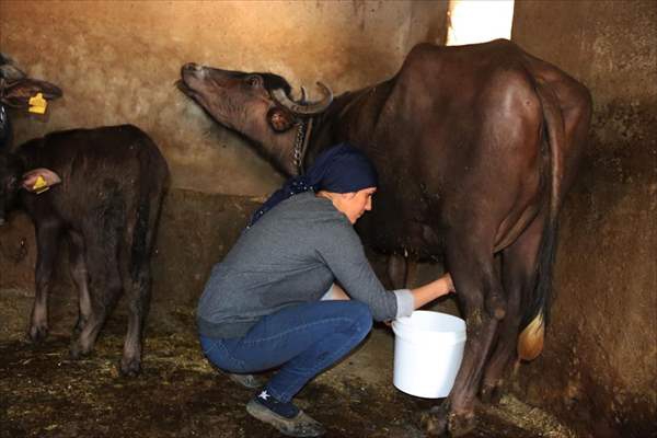 AİLE, GEÇİMİNİ MANDA SÜTÜYLE SAĞLIYOR
