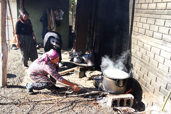 ALPARSLAN DİYARI- Merkeze bağlı Enginalan köyünde manda yetiştiriciliği yapan Nurcan Kalem (39), eltisi ve kayınvalidesinin de desteğiyle sabahın ilk ışıklarında kalkıp ahırdaki inek ve mandaları sağıyor. Daha sonra hayvanların bakımını yapan Kalem, sağdıkları sütleri ocakta pişirip kaymak, yoğurt, peynir, tereyağı ve diğer süt ürünlerini elde ediyor.