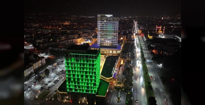 Manisa Büyükşehir Belediye hizmet binası, sağlık camiasının sembolü olan yeşil ve beyaz renklerle aydınlatıldı. Gece saatlerinde şehri aydınlatan bu özel ışıklandırma, sağlık personeline duyulan derin saygıyı ve dayanışma mesajını tüm şehre taşıdı.