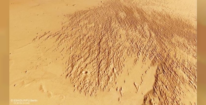Avrupa Uzay Ajansı'nın (ESA) Mars Express yörünge aracı, Eumenides Dorsum dağları yakınlarında 'yardang' adı verilen uzun sırtları keşfetti. Bu yapılar, aynı yöne doğru eğilip kıvrılarak, bölgedeki hakim rüzgarın yönünü net bir şekilde ortaya koyuyor. ESA'ya göre bu ortak yönelim, on binlerce yıl boyunca aynı bölgeyi aşındıran, onlarca kilometreye yayılan düzenli bir erozyonun sonucu.