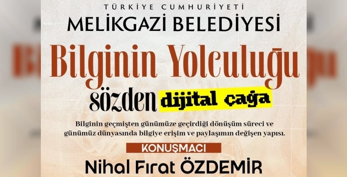 Kayseri Melikgazi Belediyesi, kültür ve sanat etkinliklerine bir yenisini ekleyerek, Nihal Fırat Özdemir'in konuşmacı olacağı 'Bilginin Yolculuğu: Sözden Dijital Çağa' konulu bir konferans ve atölye çalışmaları düzenleyecek. Etkinlik, Sanat Melikgazi'de gerçekleştirilecek ve katılım için başvurular kontenjanla sınırlı olacak.