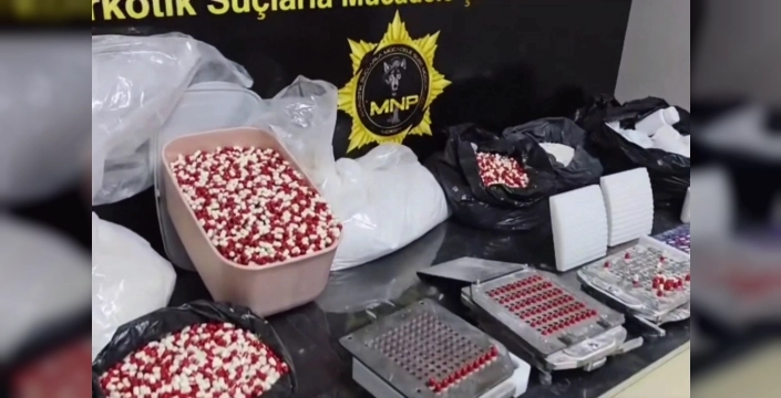 Operasyon kapsamında yapılan detaylı aramalarda, tam 65 kilo 250 gram pregabalin etken maddeli sentetik ecza hammaddesinin yanı sıra, 45 bin 482 adet doldurulmuş kapsül, 135 bin 100 adet boş kapsül, 1.850 ilaç kutusu, 25 gram metamfetamin ve 9 bin 912 adet sentetik ecza hapı bulundu. Ayrıca, suç aleti olarak kullanılan 2 ilaç basım makinesi ve 1 mikser de emniyet güçleri tarafından muhafaza altına alındı.